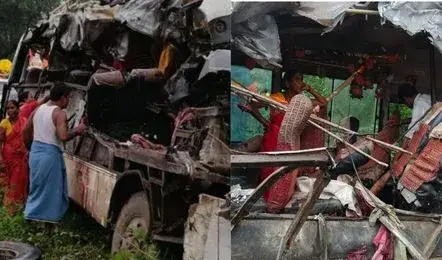 Deoghar Road Accident: देवघर में भीषण सड़क हादसा, बस-ट्रक की टक्कर से 18 कांवड़ियों की दर्दनाक मौत |